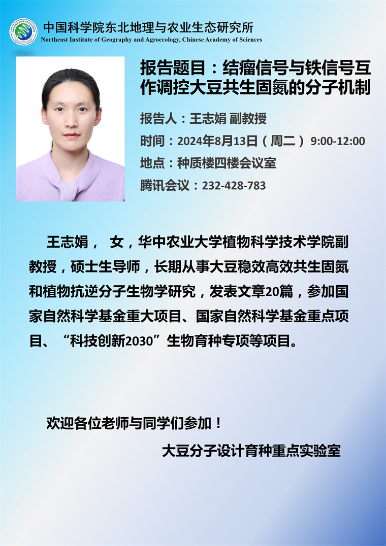 結瘤信號與鐵信號互作調控大豆共生固氮的分子機制-王志娟 副教授